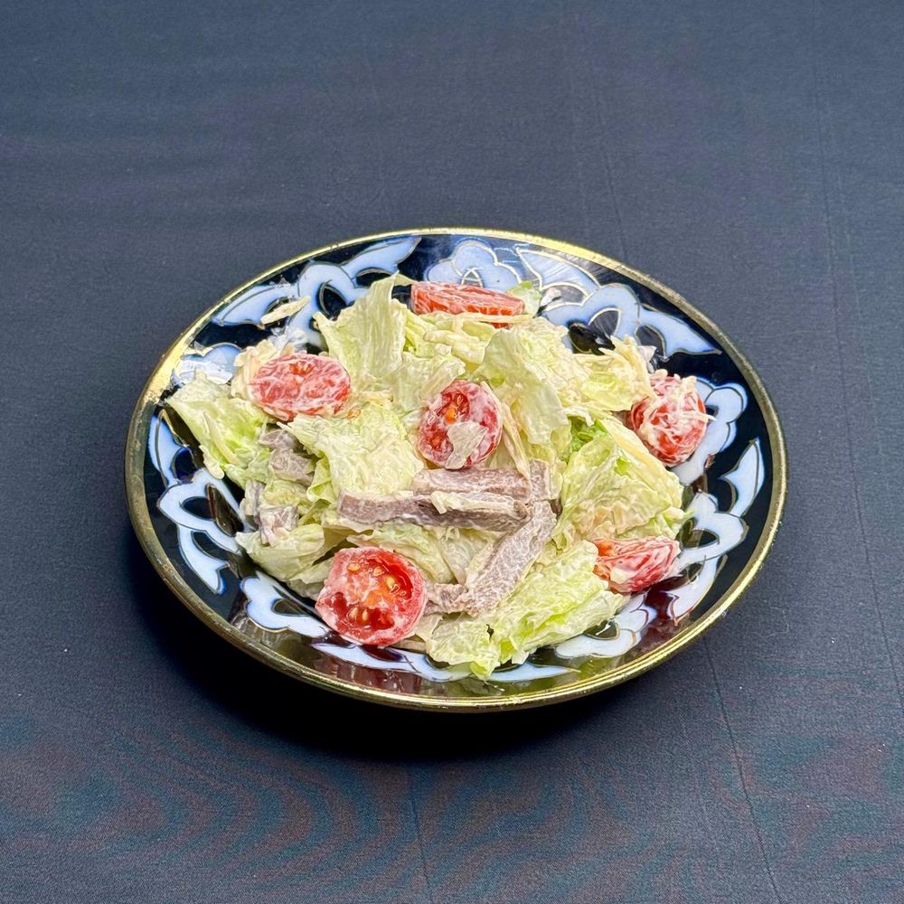 Айсберг, лит салата, сыр пармезан, помидор черри, языкговяжий, майонез, горчица 200u